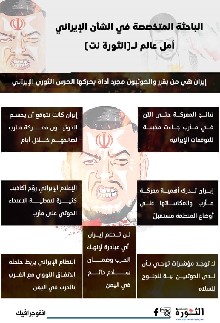 وحول سبب الاحتشاد الإيراني خلف الحرب الحوثية على مارب، تقول أمل عالم، إن الإيرانيين يدركون "أهمية معركة مأرب وانعكاساتها على الأوضاع في المنطقة مستقبلًا، لذلك حظيت باهتمام واسع".