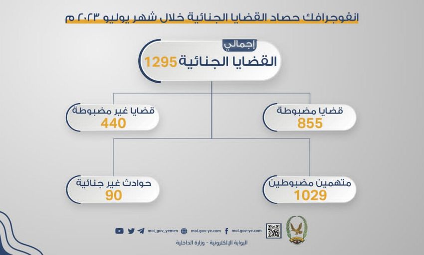 1029 متهما في قبضة الشرطة على ذمة 1295 قضية جنائية خلال يوليو 2023م