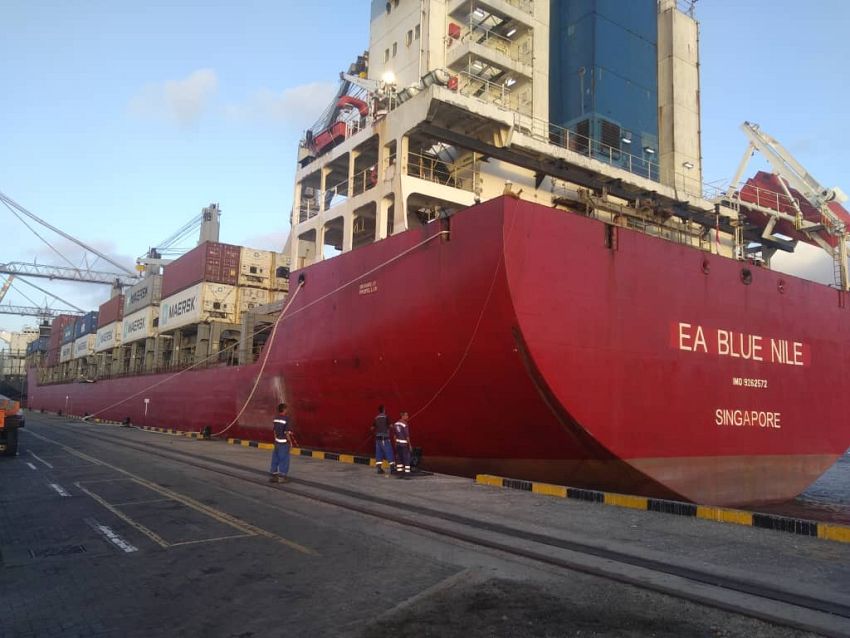 محطة الحاويات بميناء عدن تستقبل سفينة الحاويات "بلو نيل"