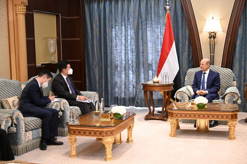 رئيس مجلس القيادة الرئاسي يشيد بالموقف الصيني الى جانب الشعب اليمني
