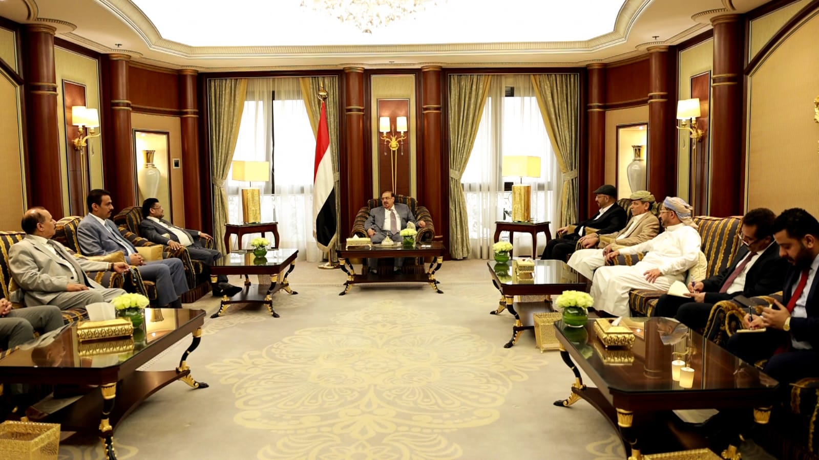 فخامة الرئيس يرأس اجتماعا لمجلس القيادة الرئاسي والحكومة والمحافظين ويلتقي عدد من السفراء