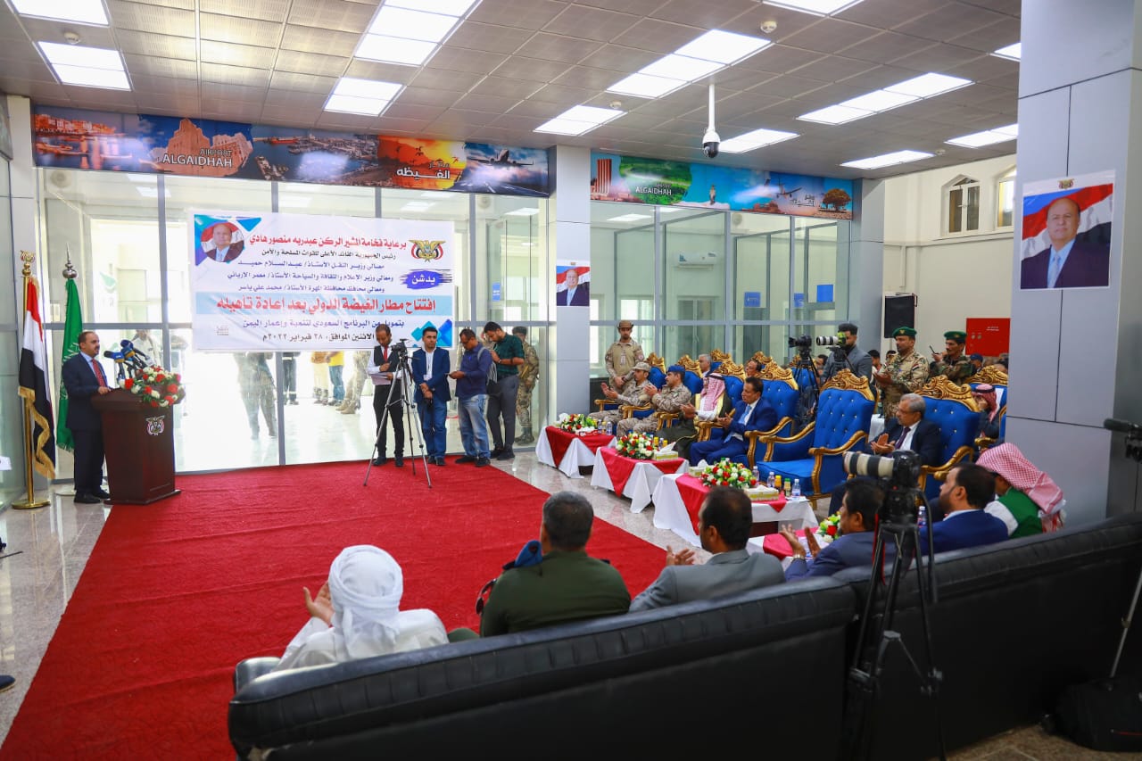 وزير الإعلام ومحافظ المهرة يفتتحان مطار الغيضة الدولي بتمويل من البرنامج السعودي