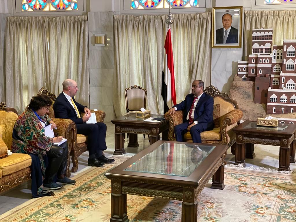 بحث وزير الخارجية وشؤون المغتربين الدكتور أحمد عوض بن مبارك، اليوم، مع نائب المنسق للشؤون الإنسانية للأمم المتحدة لدى بلادنا دييغو زوريلا، القضايا المتصلة بالوضع...