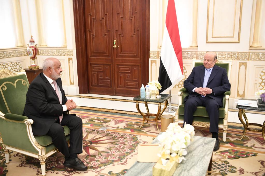 استقبل فخامة الرئيس عبدربه منصور هادي رئيس الجمهورية اليوم، محافظ محافظة الحديدة الدكتور الحسن طاهر.