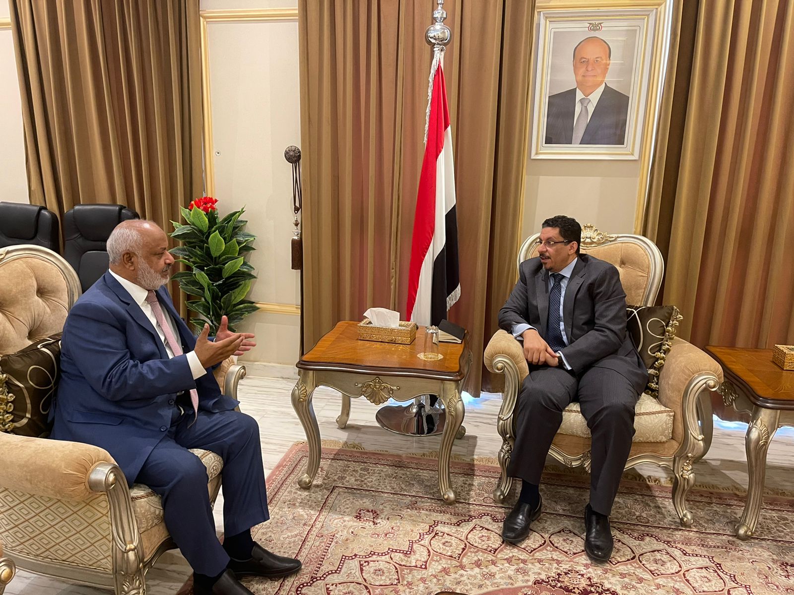 ناقش وزير الخارجية وشؤون المغتربين الدكتور أحمد عوض بن مبارك، اليوم، مع محافظ الحديدة الدكتور الحسن طاهر، الاوضاع الإنسانية في المديريات المحررة، ووضع بعثة الامم...