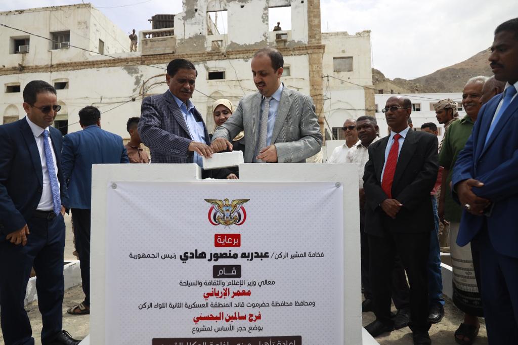 الارياني والبحسني يضعان حجر الأساس لمشروع إعادة تأهيل مبنى إذاعة المكلا