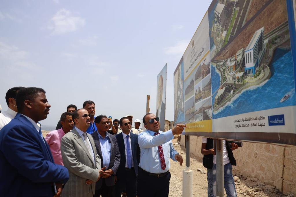 الارياني والبحسني يتفقدان سير العمل بمستشفى غيل باوزير والمدرسة الوسطى ومحطة الكهرباء في الشحر ومركز المحضار