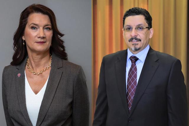 بحث وزير الخارجية وشؤون المغتربين الدكتور أحمد عوض بن مبارك، اليوم، عبر تقنية الاتصال المرئي، مع وزيرة خارجية السويد آن ليندي، الجهود المبذولة لتحقيق السلام...