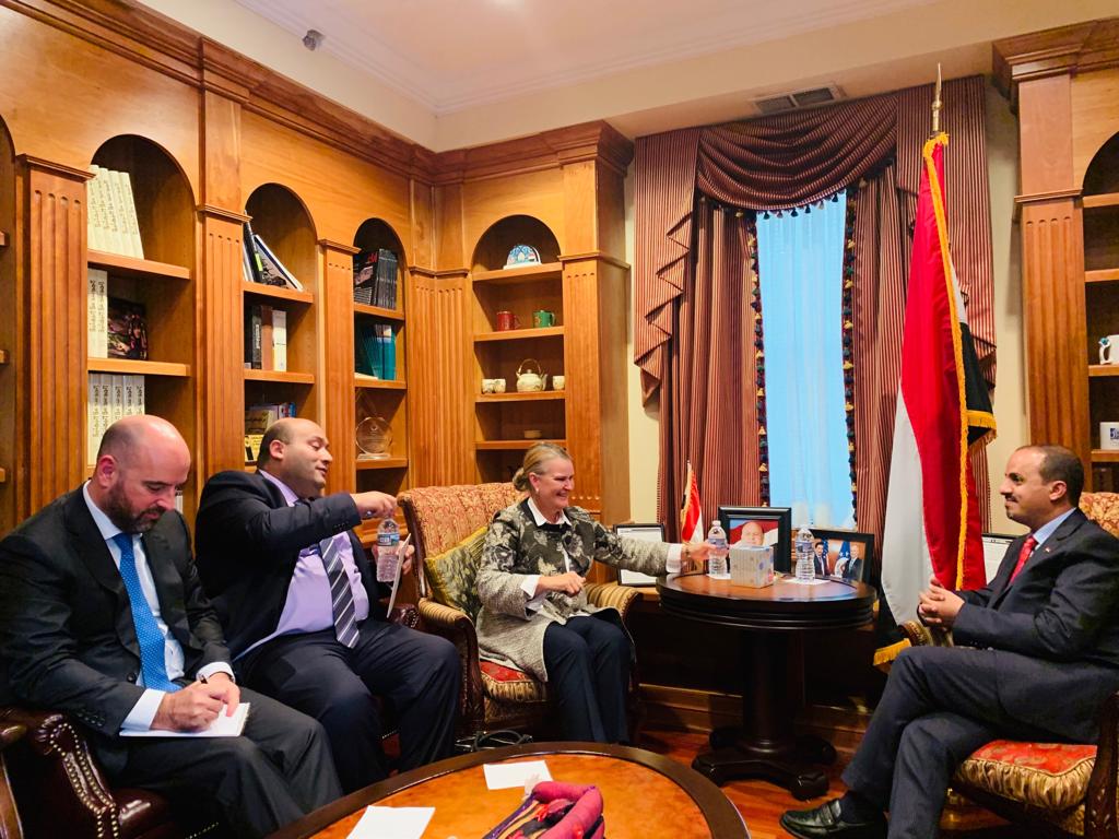 ألتقى وزير الإعلام معمر بن مطهر الإرياني خلال زيارته للولايات المتحدة الأمريكية عضو الكونغرس بين كريشنو .