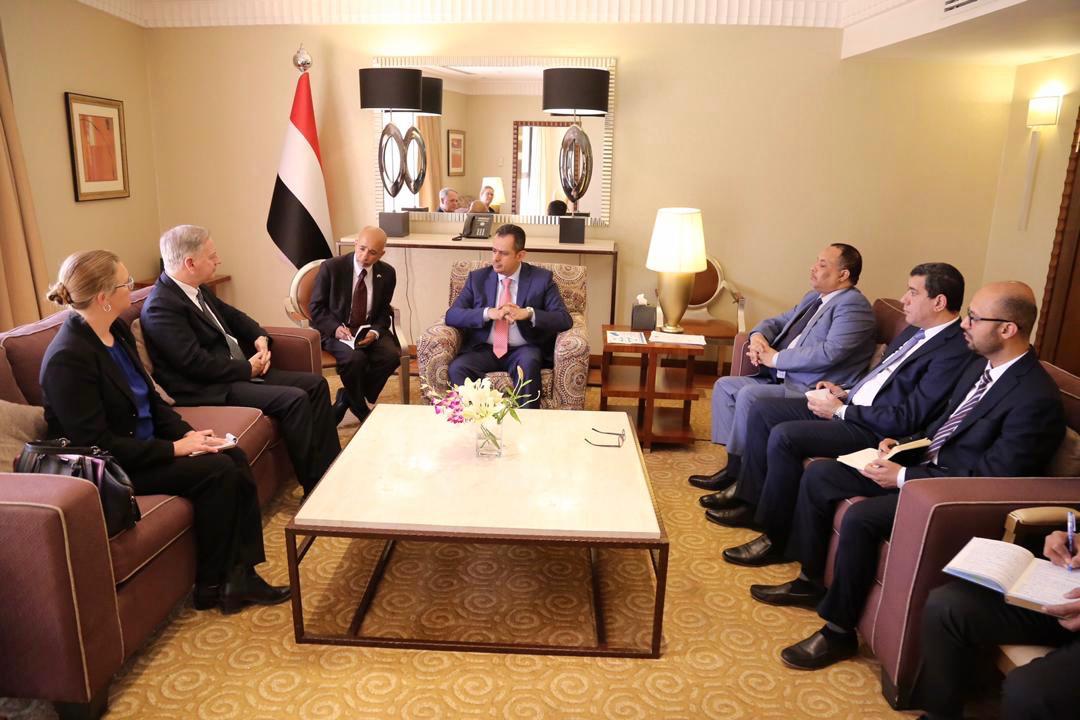 استقبل رئيس الوزراء، الدكتور معين عبدالملك، اليوم الخميس، سفير الولايات المتحدة الأمريكية الجديد لدى اليمن كريستوفر هنزل.