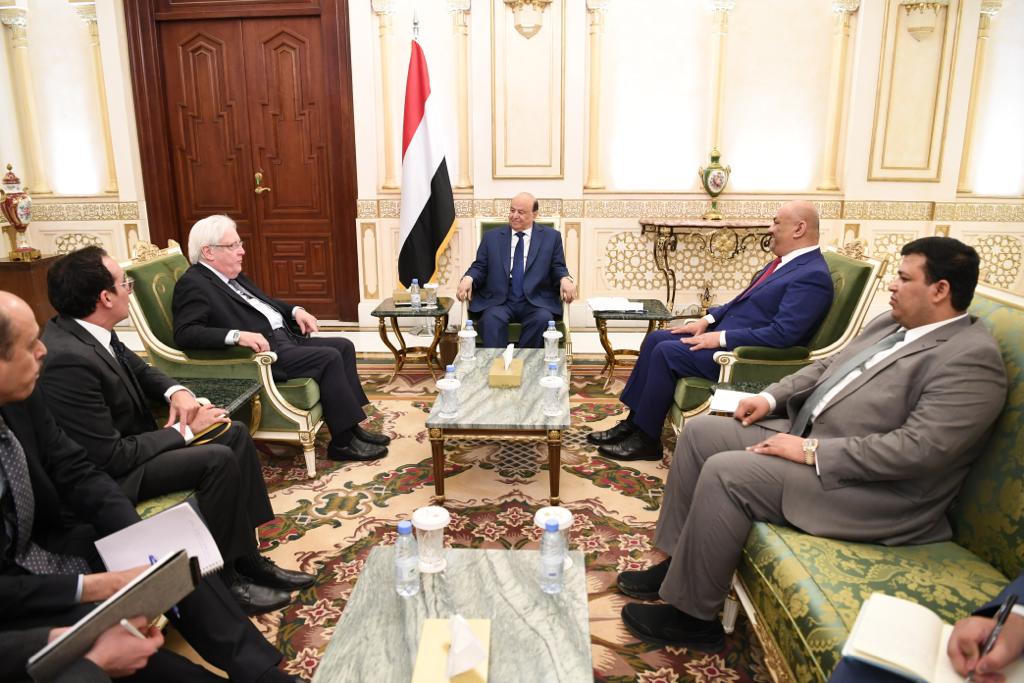 استقبل فخامة الرئيس عبدربه منصور هادي رئيس الجمهورية، مساء اليوم، المبعوث الأممي إلى اليمن مارتن غريفيث، للوقوف على مستجدات السلام وما يتصل منها بتطبيق بنود اتفاق...