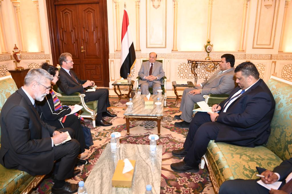 استقبل فخامة الرئيس عبدربه منصور هادي رئيس الجمهورية ، اليوم ،سفير جمهورية فرنسا لدى اليمن كريستيان تيستو.