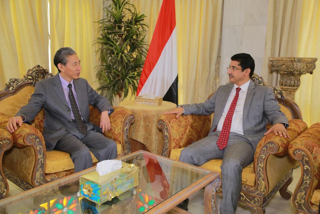 وكيل وزارة الخارجية الدكتور منصور بجاش يلقي السفير الصيني لدى بلادنا كانغ يونغ