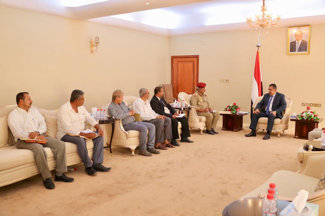 رئيس الوزراء يستقبل محافظ لحج ومدراء مكاتب الوزارات في المحافظة