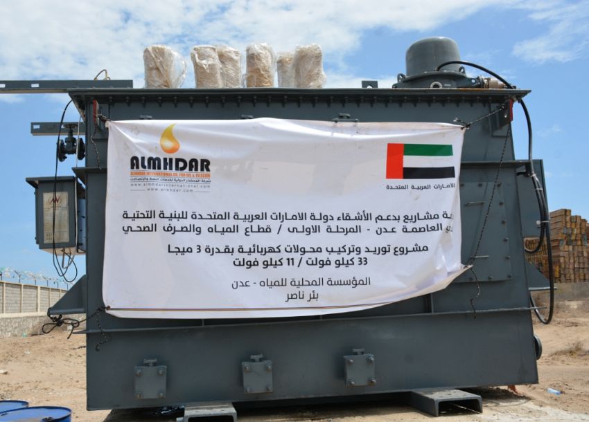 مؤسسة المياه بعدن تتسلم محولات كهربائية مقدمة من الإمارات