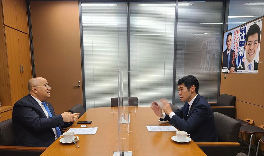 السفير السنيني يبحث مع عضو مجلس النواب الياباني سبل تعزيز التعاون البرلماني