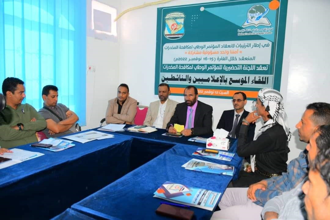 مناقشة الترتيبات الإعلامية للمؤتمر الوطني لمكافحة المخدرات بمأرب