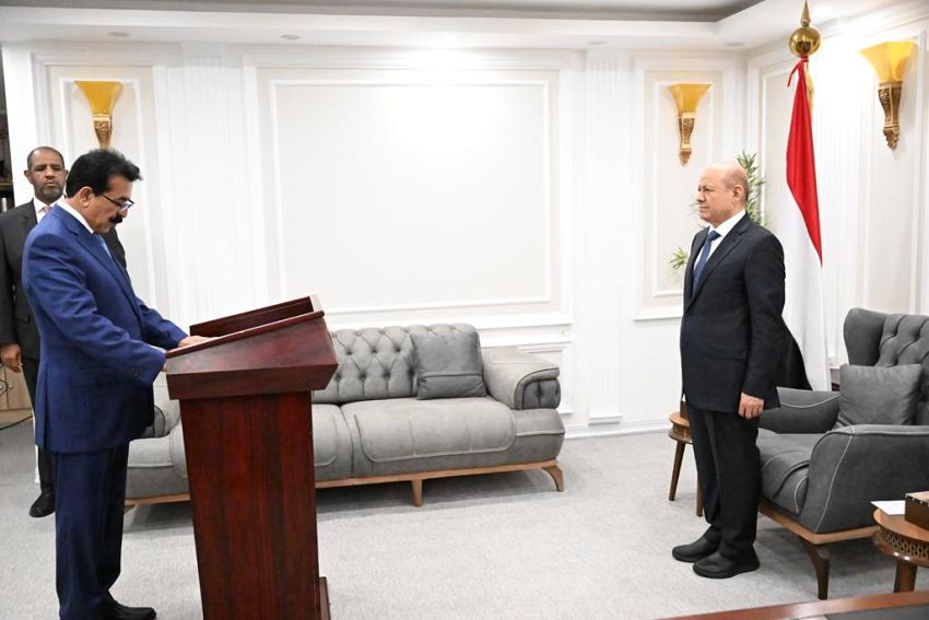 محافظ الجوف يؤدي اليمين الدستورية امام رئيس مجلس القيادة الرئاسي