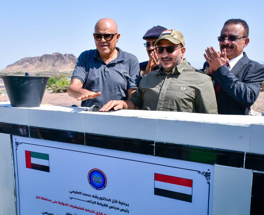 عضو مجلس القيادة العميد طارق صالح ومحافظ تعز يدشنان تنفيذ طريق الكدحة - البيرين