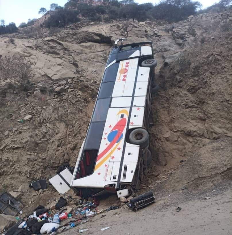 وفاة 3 وإصابة 44 أخرين بانقلاب باص للنقل الجماعي جنوب تعز