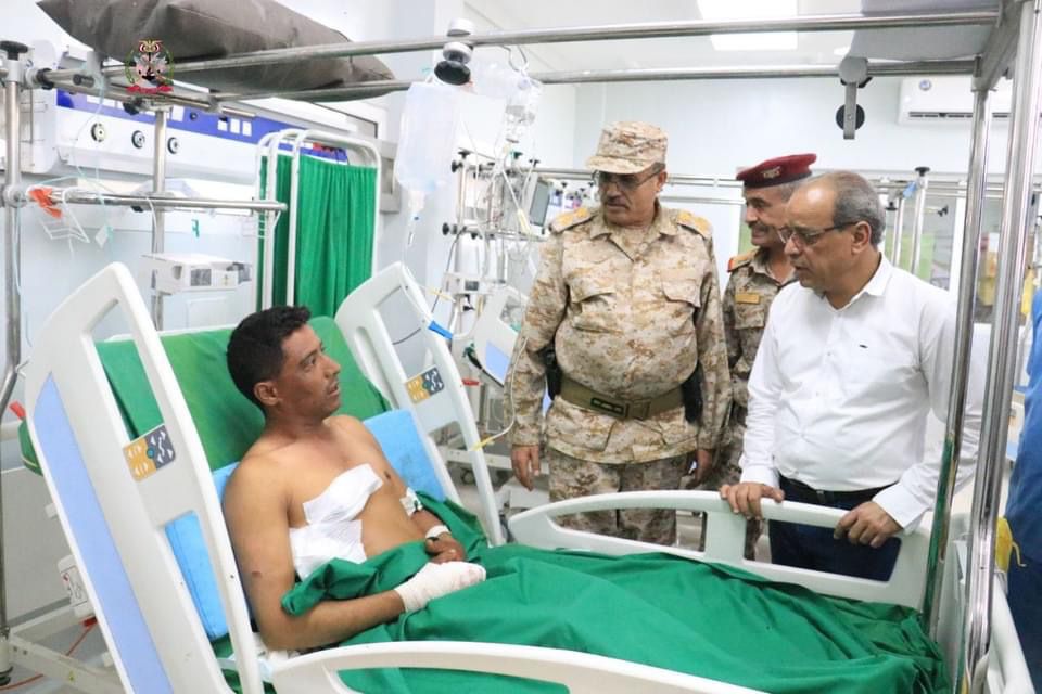 أركان محور تعز يزور جرحى قصف مليشيا الحوثي على منطقة الضباب