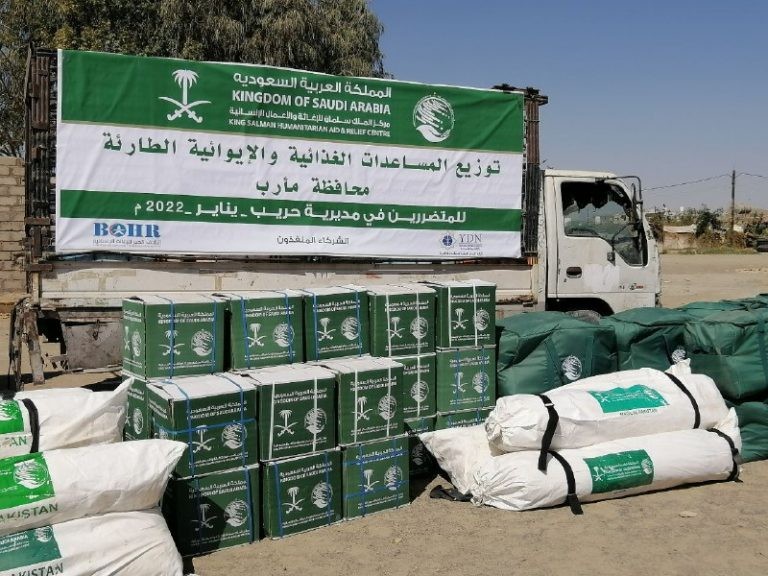 توزيع مساعدات اغاثية في مديريات حريب وبيحان وعسيلان