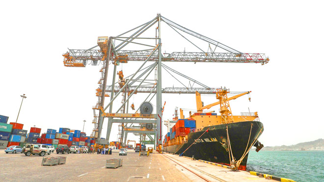 طواقم فنية تجري عمليات صيانة واسعة للروافع الجسرية بمحطتي المعلا للحاويات