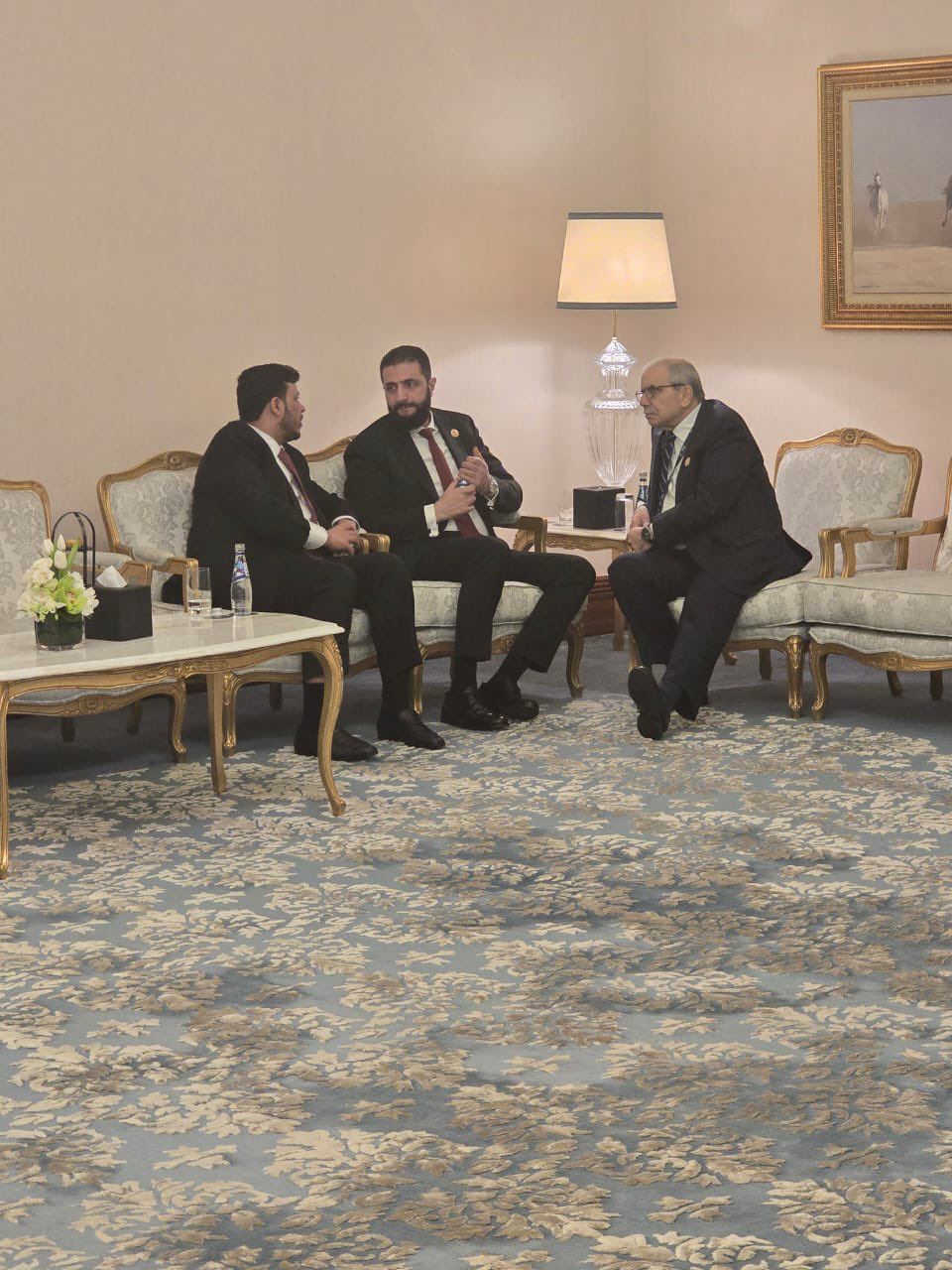 العليمي يلتقي الشرع ونواف سلام على هامش منتدى الدوحة