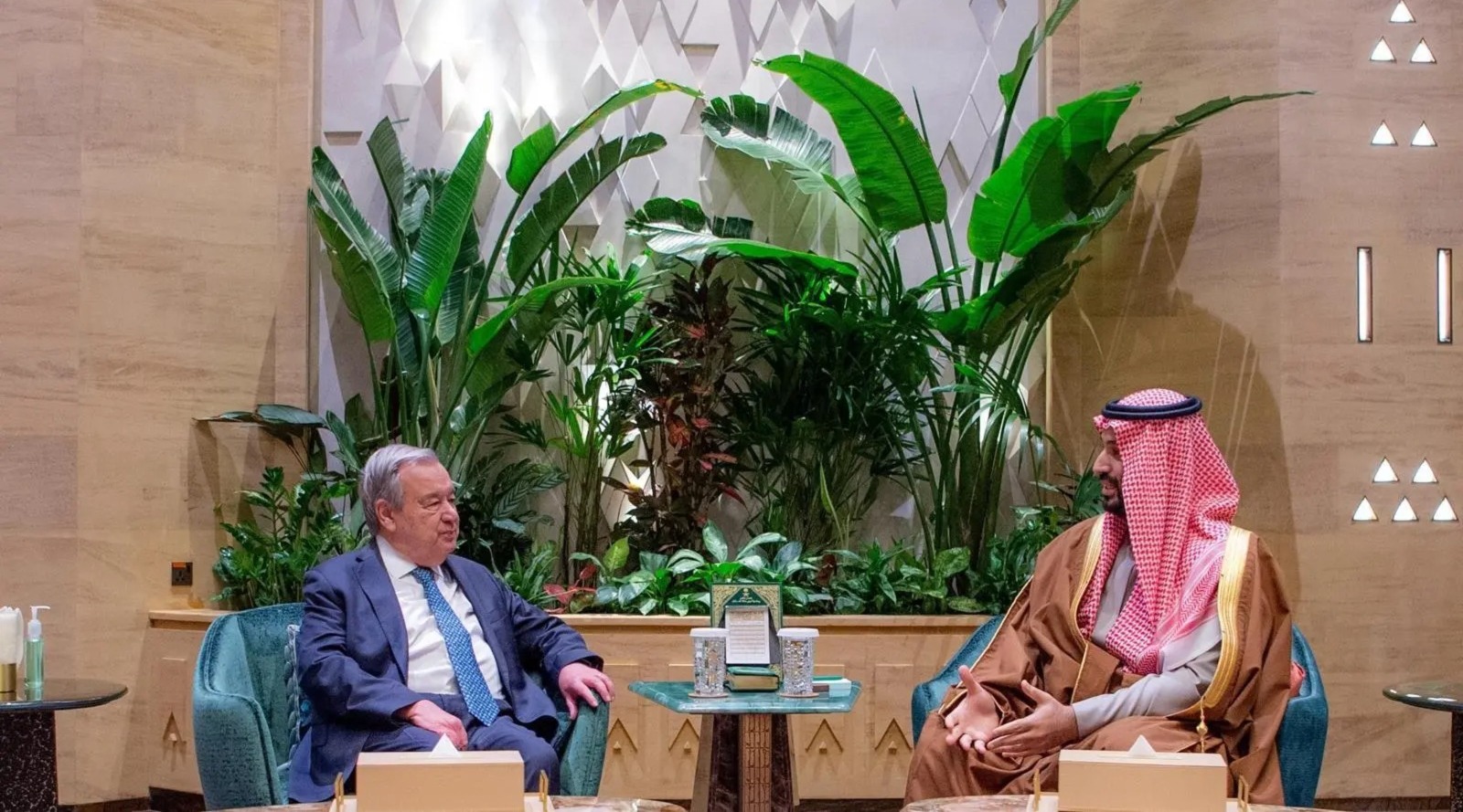 ولي العهد السعودي يستعرض مع الأمين العام للأمم المتحدة مستجدات الأوضاع الإقليمية والدولية