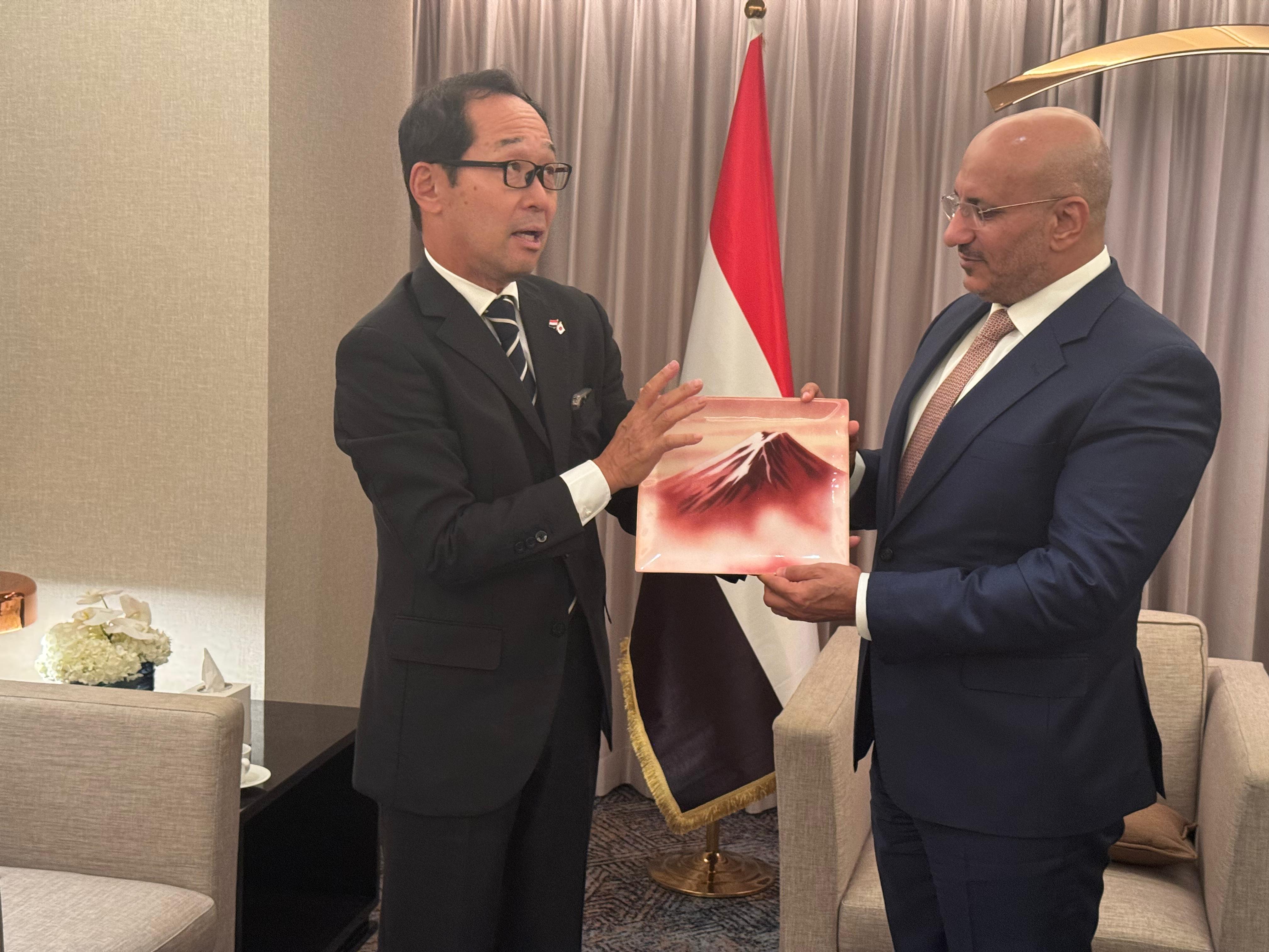 من جانبه، جدد السفير الياباني التأكيد على دعم بلاده لمجلس القيادة الرئاسي والحكومة، وحرصها على المساهمة في جميع الجهود الرامية لتحقيق الاستقرار في اليمن، مؤكدًا رفض اليابان لكل الأنشطة المزعزعة للأمن في المنطقة والملاحة الدولية.