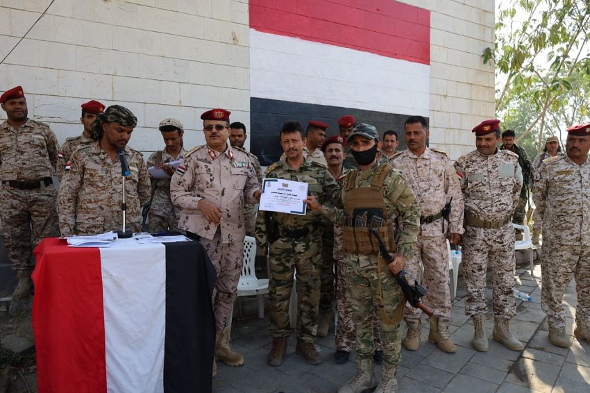 اللواء المجيدي يشهد اختتام دورة المهارات القتالية في اللواء 145 مشاة بتعز