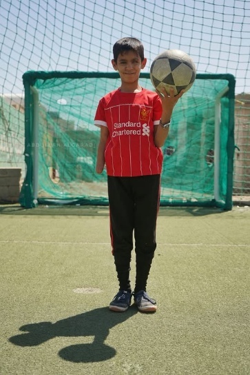 يتذكر "كنت أوثق في مركز الأطراف الصناعية، شفت الطفل وقصته وجعتني قلت له أنا محتاجك يوم واحد، تعال بملابس رياضية وأخذته إلى ملعب كرة القدم، خليته يمسك الكورة ويقف على رجل واحدة، بعين واحدة... وصورته، الصورة انتشرت والناس تأثروا فيها كثير، كانت لحظة مؤلمة وجميلة في نفس الوقت".