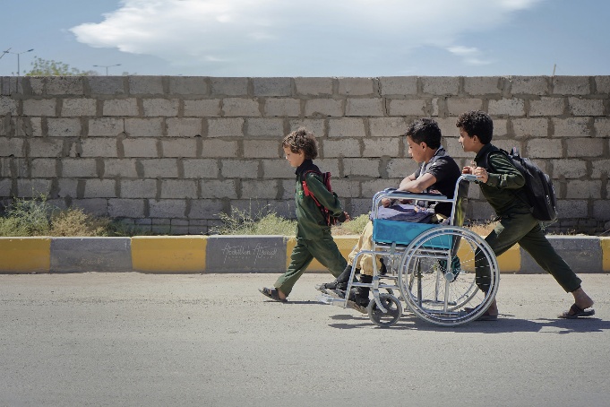 في أحد الأيام، وبينما كان عبدالله الجرادي يغادر مركز الأطراف الصناعية في مأرب، استوقفه مشهد بسيط في مظهره، لكنه غارق في الوجع.يقول عبدالله "كنت خارج من المركز وشفت طالبين راجعين من المدرسة واحد يسوق عربية صغيرة ويدفع صاحبه اللي كان أحد ضحايا الألغام المنظر صدمني حسّيت بألم عميق."