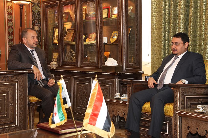 بحث القائم بأعمال السفارة اليمنية في دمشق، محمد بعكر، اليوم، مع رئيس غرفة تجارة دمشق، المهندس عصام زهير الغريواتي، سبل تعزيز العلاقات الاقتصادية والتجارية بين البلدين الشقيقين، وآليات تطوير التعاون المشترك.