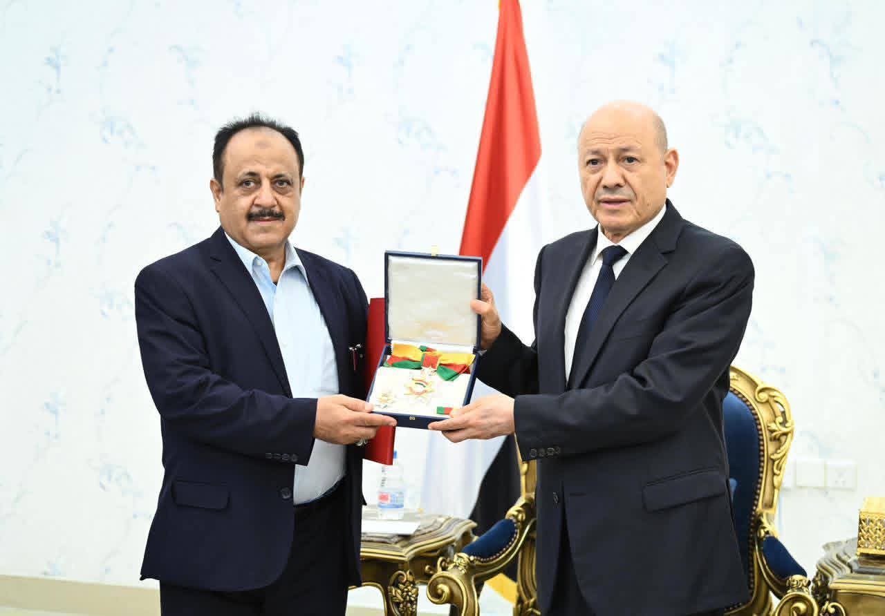 الرئيس العليمي يقلد رئيسي جهازي الامن السياسي والقومي السابقين وسامي الشجاعة