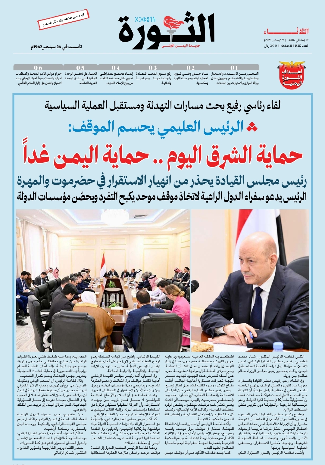 ويأتي إصدار العدد رقم (18212) تأكيداً لالتزام الثورة بخدمة القارئ، ومواصلة رسالتها الوطنية والإعلامية، وتجديد العهد بأن تبقى — كما كانت وكما ستظل — جريدة اليمن الأولى، وصوت الحقيقة الذي لا ينقطع.