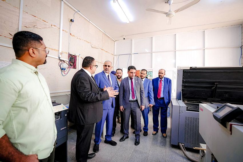 تفقد عضو مجلس القيادة الرئاسي، اللواء عيدروس الزُبيدي، اليوم الخميس، سير العمل في مقر وزارة الإعلام والثقافة والسياحة، بالعاصمة المؤقتة عدن.