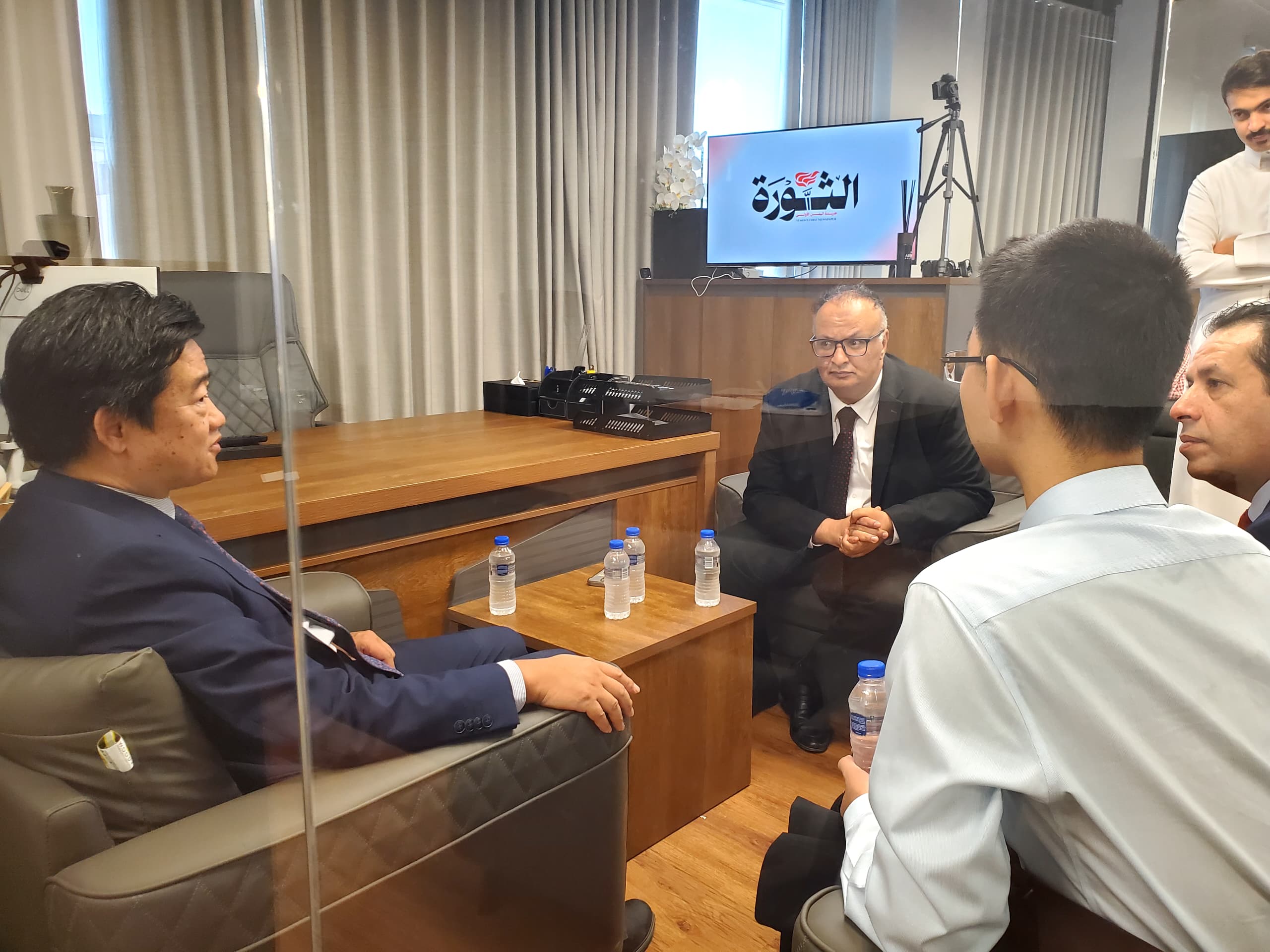 وبحث الجانبان آفاق التعاون المشترك في المجال الإعلامي.وخلال اللقاء أكد السفير الصيني استعداد بلاده لتقديم الدعم اللازم لتطوير البنية التحتية لمؤسسة الثورة وتأهيل كوادرها الفنية والإعلامية. وأشاد السفير تشنغ بالجهود الكبيرة التي تبذلها صحيفة الثورة للحفاظ على دورها الوطني والإعلامي الفاعل رغم التحديات والظروف الصعبة التي تمر بها البلاد.